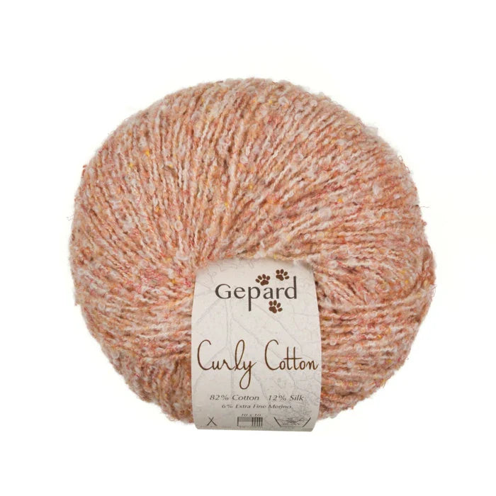 Gepard Curly Cotton is unlike anything else in your yarn stash. A unique, incredibly lightweight bouclé yarn in cotton, silk, and a touch of extra-fine merino, full of texture, character, and quiet luxury. The kind of yarn that makes even the simplest stitch pattern look like it took real effort.