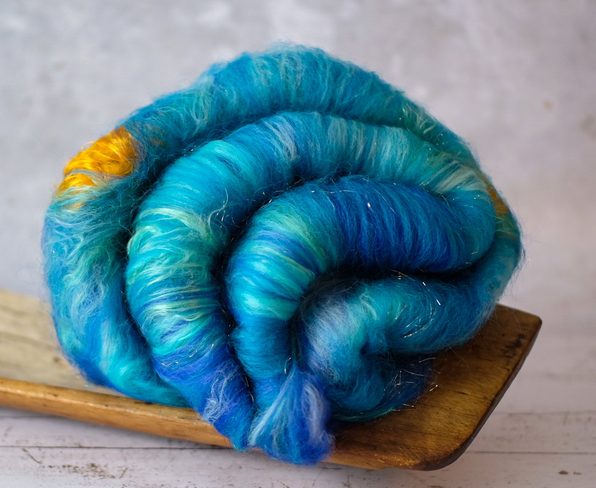 A blend of various non-super wash, high quality fibres. Each one the of batts are unique and one of a kind.