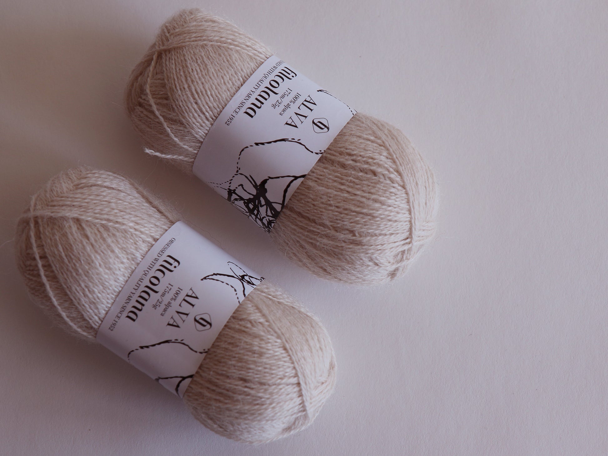 Alva is a thin 2-ply yarn spun from fibres of Peruvian alpacas. Alva is soft, warm, and pliable, and perfectly suitable for many kinds of projects. The thin yarn is supreme to blend with other yarn qualities. Furthermore, Alva is a nice alternative to a thin mohair.