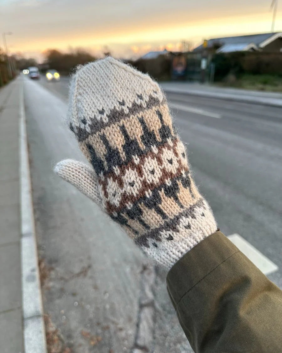 Celeste Vantar stickas från handleden och fram. Tummen stickas allra sist. De stickas på en lång rundsticka med Magic Loop-teknik eller på strumpstickor.