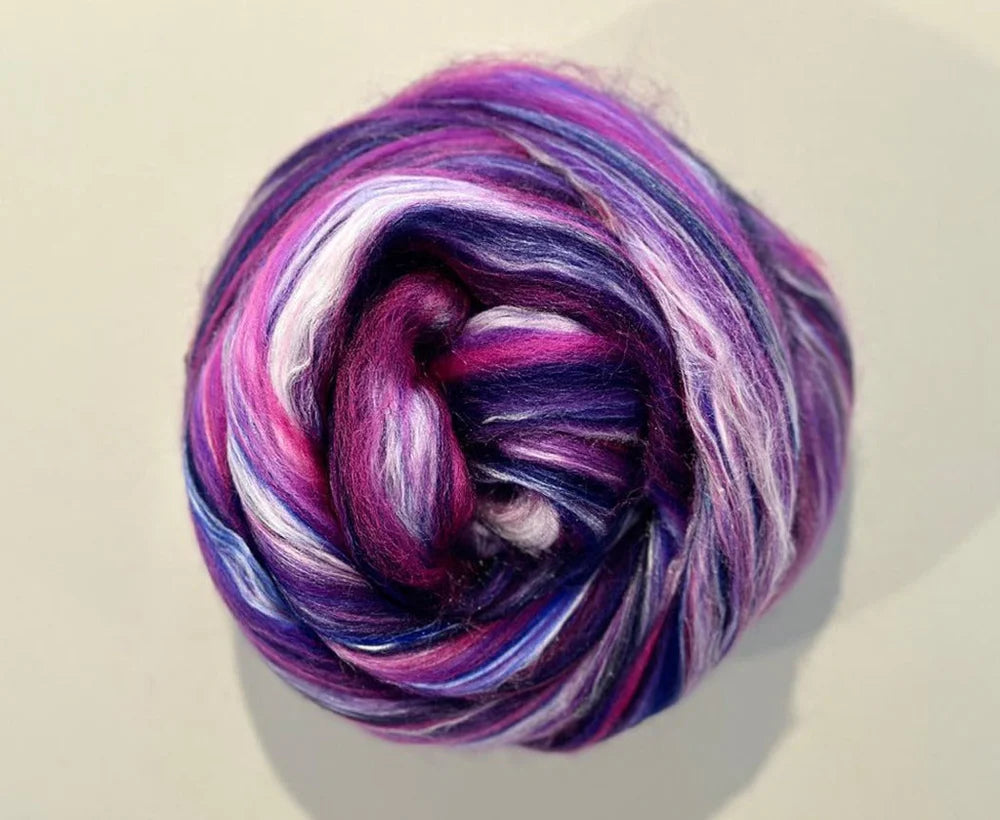 A bright and bold mix of Merino Wool & A Grade Mulberry Silk. The natural Mulberry Silk creates a striking texture and shine running through the blend.
