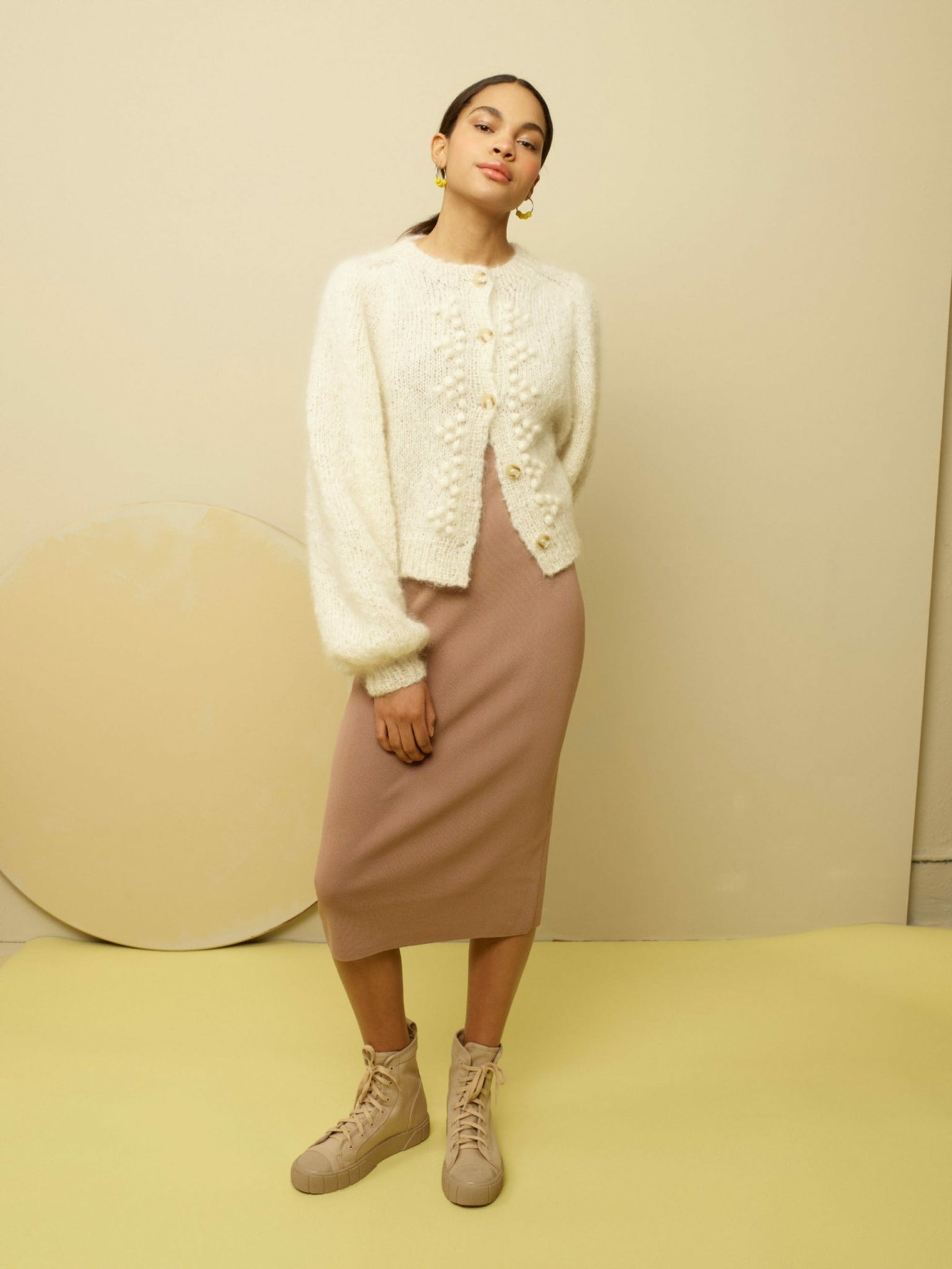 This booklet is filled with soft favorites! Thick mohair is a soft, lovely yarn that knits up in no time! Try the everyday favorite Vespa V-neck sweater or the festive Boblene Bruse Jacket. In these models, we have emphasized minimal assembly and a good fit. We have made it easy for you to adjust the length to suit you, as most models are knitted from the top down. All patterns are available in sizes XS-XXXL. If you want to knit matching garments for children, you will find patterns in sizes 2-14 years in booklet 393.