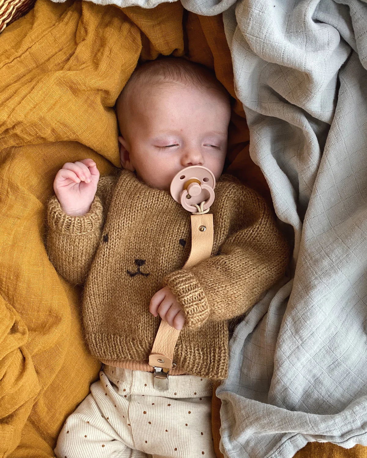 Material: 50 (100) 100 (100) 100 (100) 100 (150) 150 g Arwetta från Filcolana (50 g = 210 m) eller Kaos Organic Soft Merino (50 g = 225 m) tillsammans med 50 (50) 50 (50) 50 (75) 75 (75) 75 g Tilia från Filcolana (25 g = 210 m) eller KAOS YARN Organic Brushed Alpaca (25 g = 225 m). En rest garn till nallebroderi.