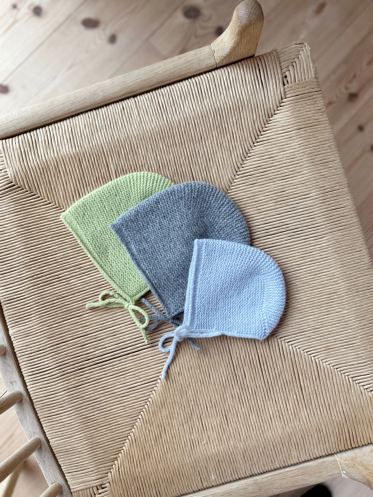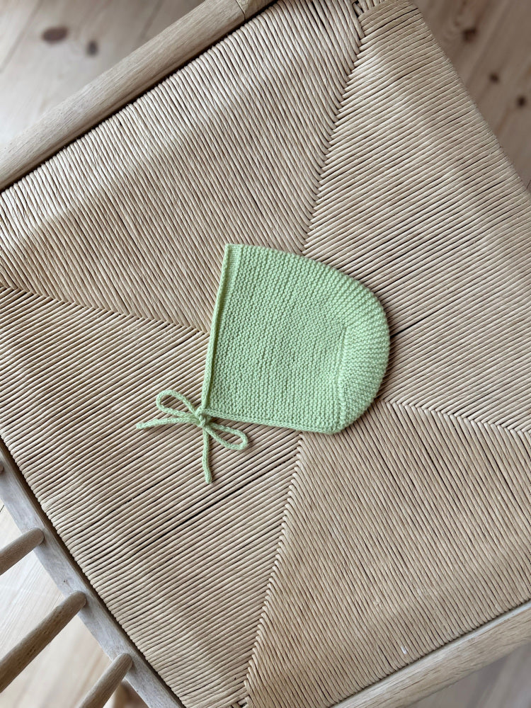 En mjuk babyhätta i rätstickning med genomtänkta detaljer.